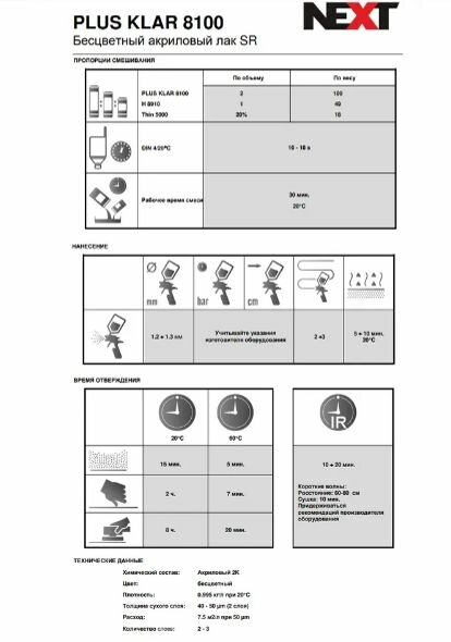 NEXT Комплект Plus Klar 8100 Лак акриловый 1,0 л + 0,5л