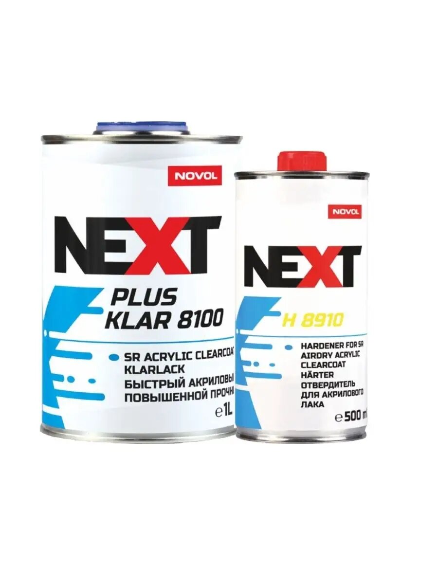 Купить NOVOL Лак "NEXT PLUS KLAR 8100", 2К, акриловый, 2+1, сверхпрочный, быстрое высыхание, 0,5 л. с