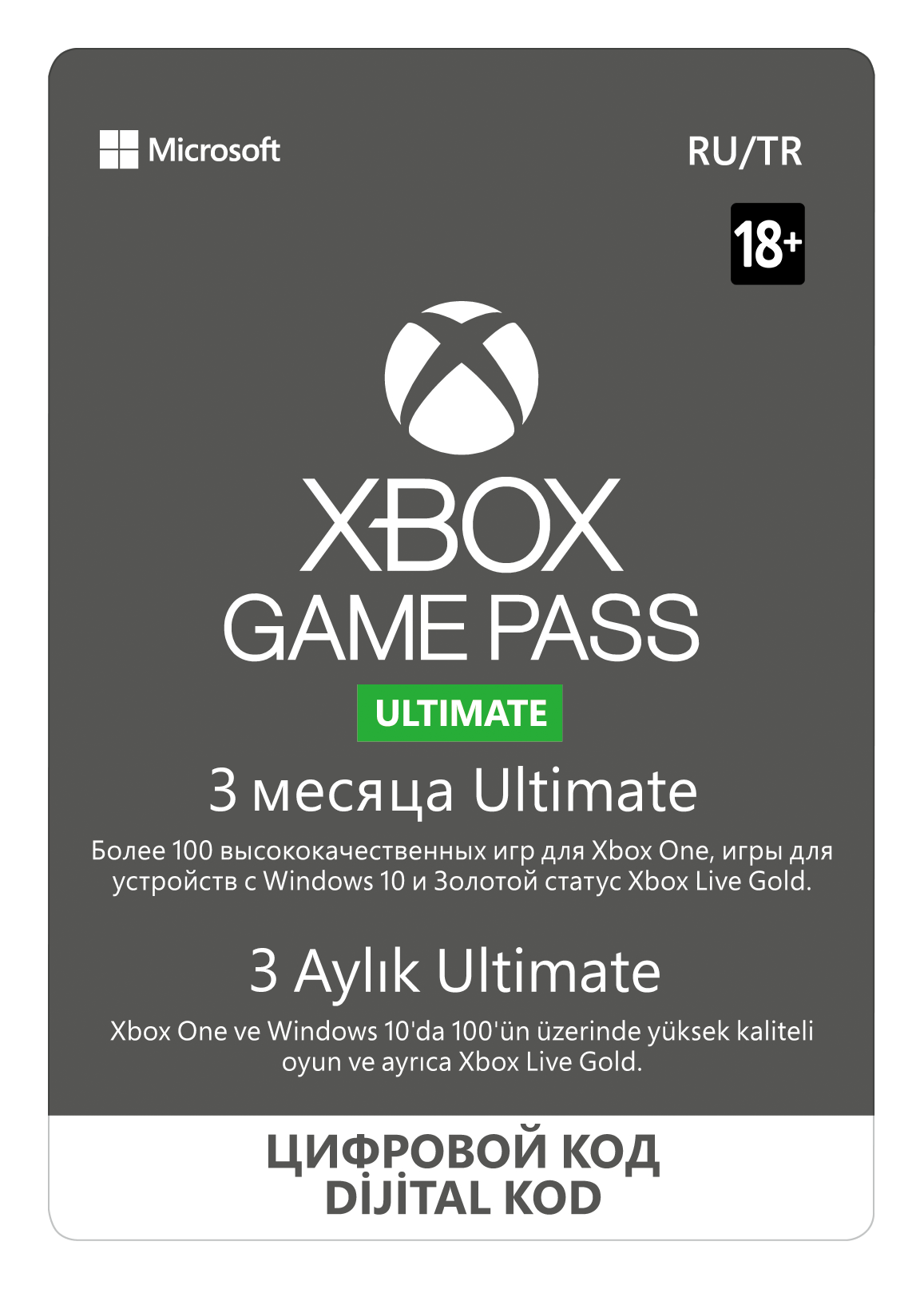 Карта оплаты Xbox Game Pass Ultimate на 3 месяца (TR) (Xbox Live (TR); Xbox,Xbox; Регион активации РФ)