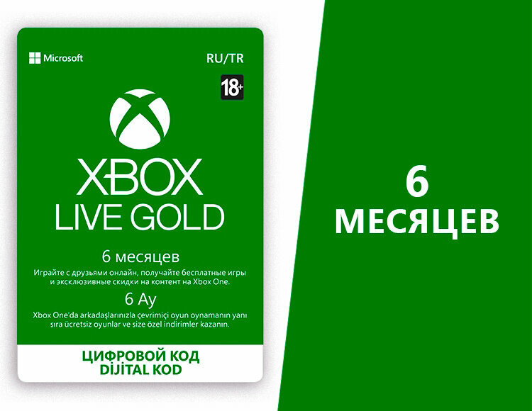 Подписка Xbox Live Gold (6 месяцев, Россия)