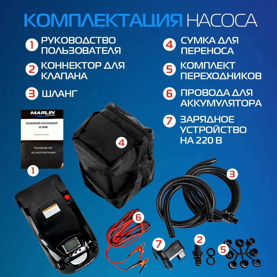 Купить Электрический насос Marlin GP-80 BD, насос для лодок пвх, сапбордов, матрасов, бассейнов