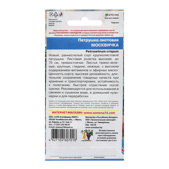 Петрушка листовая Москвичка, 2г., ЦП, Уральский дачник