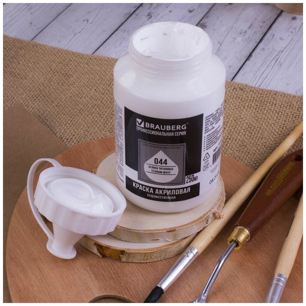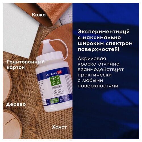 Краска акриловая художественная BRAUBERG, флакон 250 мл, профессиональная серия, белила титановые, 191072