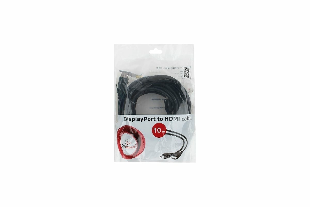 Кабель Cablexpert DisplayPort->HDMI, 10м, 20M/19M, черный, экран, пакет (CC-DP-HDMI-10M)