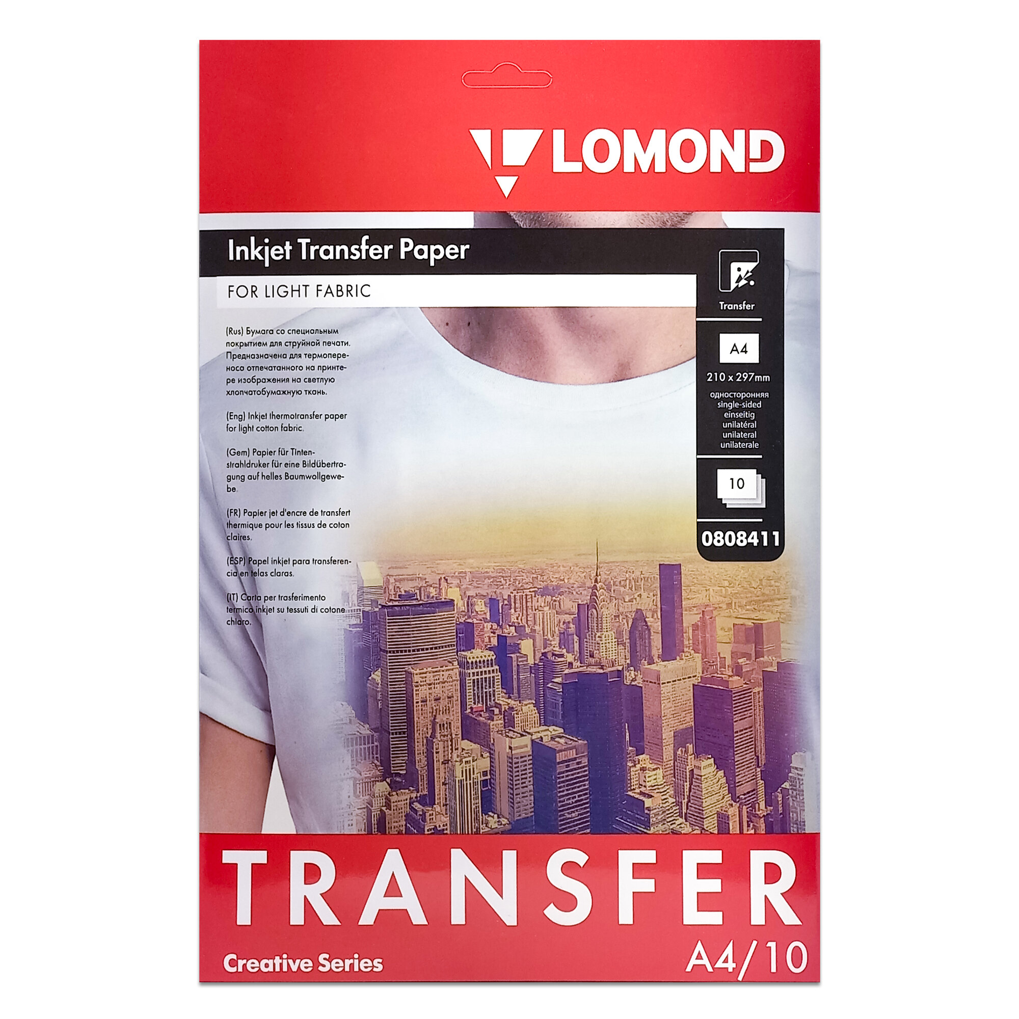 Бумага термотрансферная для светлых тканей, струйная печать, A4, 10 листов, Lomond 0808411