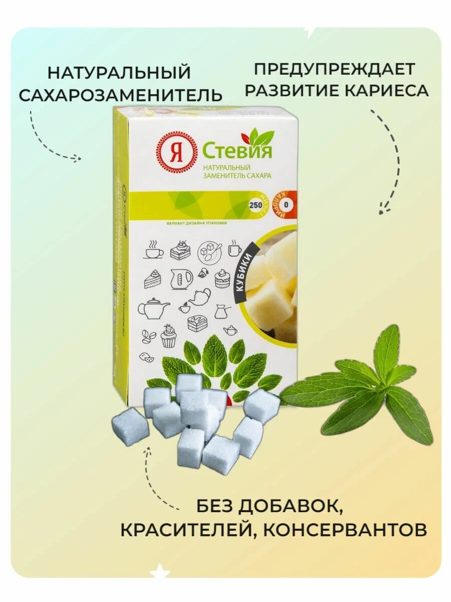"Я Стевия". Сахарозаменитель Стевия Кубики, 250 гр. Сладкие. Без привкуса.