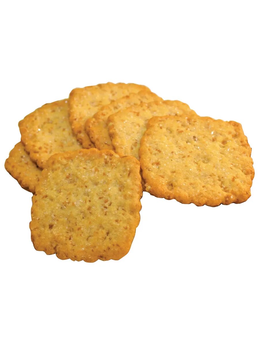 | Состав | мука пшеничная общего назначения тип м55-23, сахар, вода питьевая, масло кокосовое рафинированное дезодорированное, жир кондитерский соевый (рафинированные дезодорированные растительные масла (пальмовое, подсолнечное, соевое), эмульгатор (лецитин соевый), антиокислители (E319, E330)), кокосовая стружка (обжаренная кокосовая стружка, сахар), кунжут обжаренный, молоко сухое обезжиренное, молоко сухое цельное, крахмал пшеничный, разрыхлители (гидрокарбонат аммония, гидрокарбонат натрия), соль, глюкоза, стабилизатор (карбонат кальция), соль для посыпки (соль гидролизованный кукурузный белок), ароматизаторы, загуститель (ксантановая камедь), антиокислитель (пиросульфит натрия) |