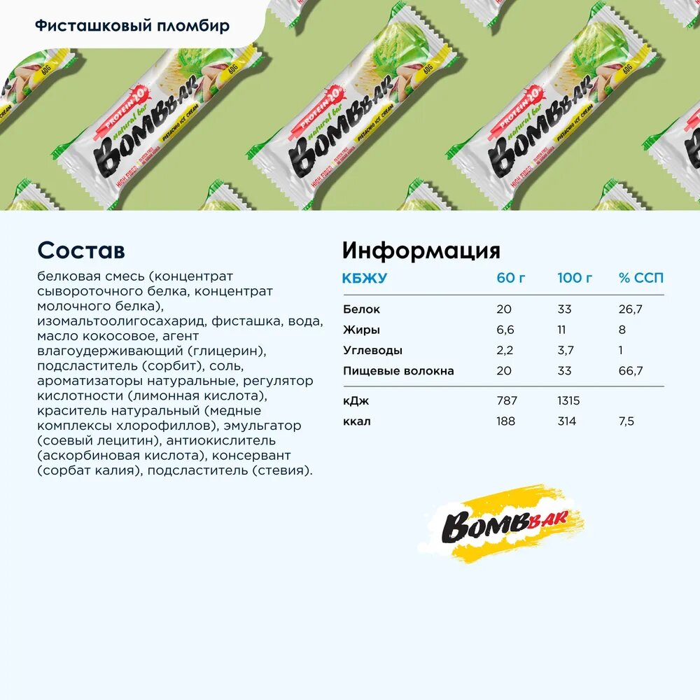 Bombbar Батончик Bombbar Фисташковый пломбир, 20 шт