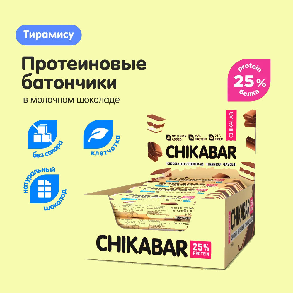 Купить Протеиновый батончик в молочном шоколаде CHIKALAB ChikaBar, Тирамису, 20 шт по 60 г