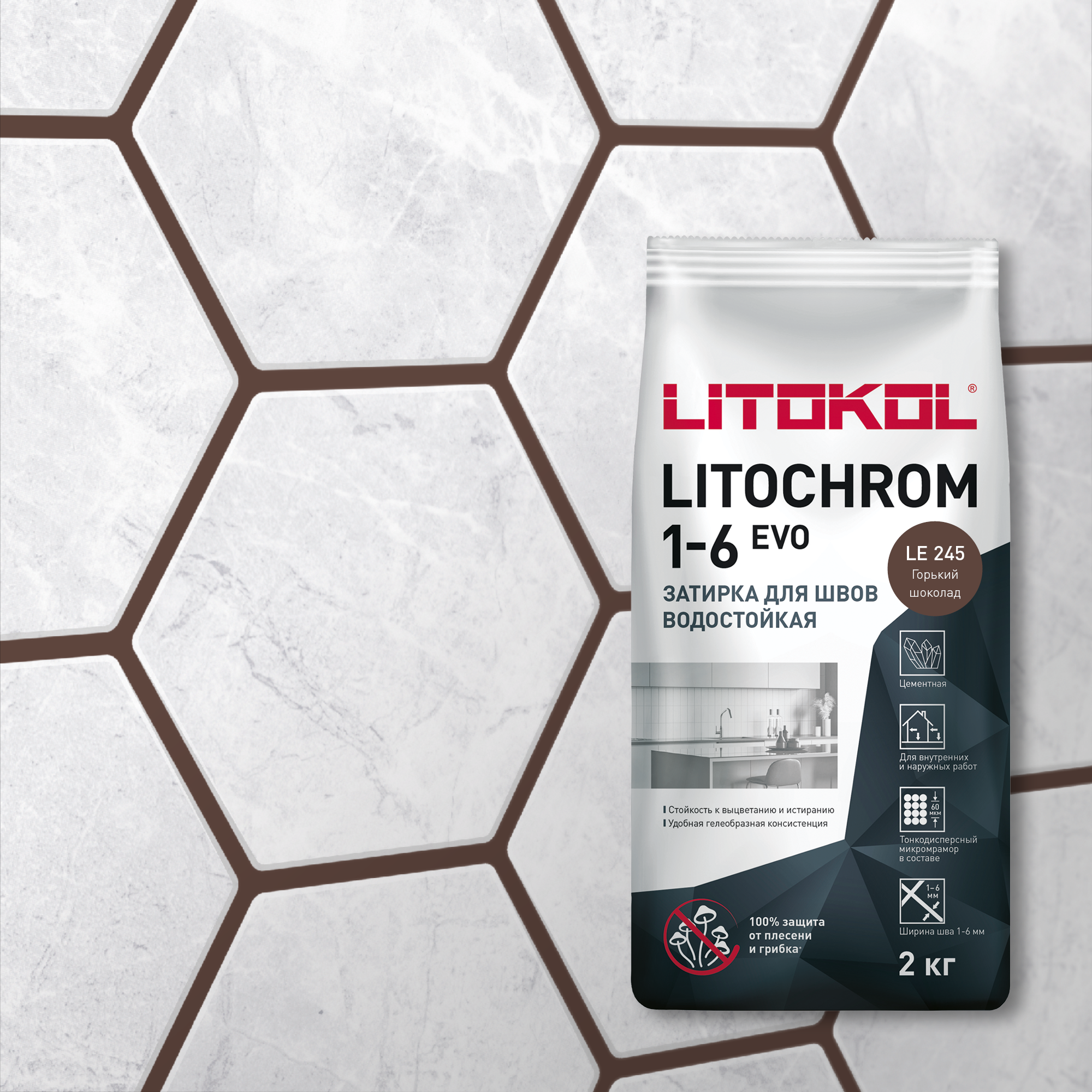 Купить Затирка цементная Litocol Litochrom Evo 1-6 мм LE.245 горький шоколад 2 кг