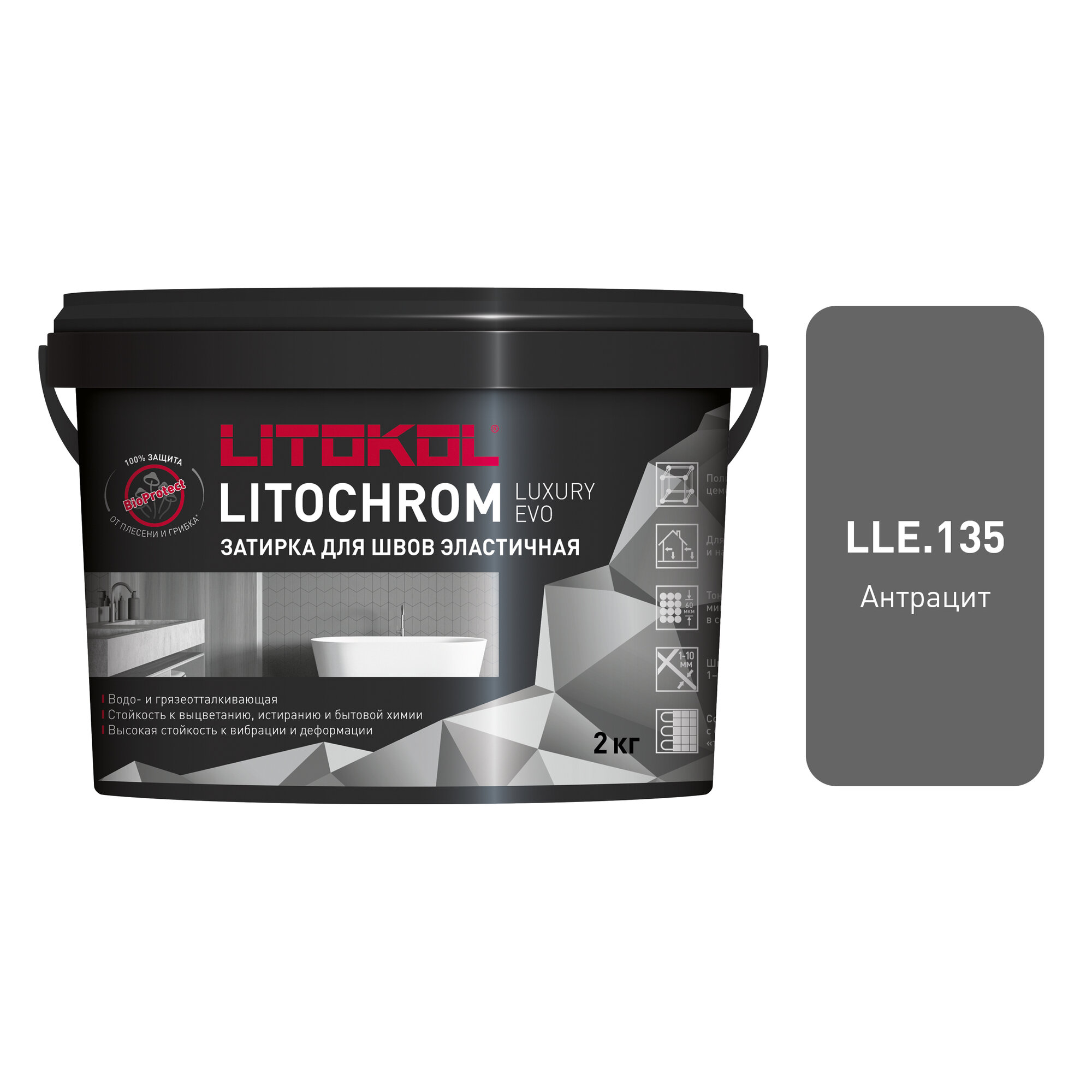 Купить Затирка для плитки, Цементно-полимерная LITOCHROM LUXURY EVO LLE.135, Антрацит, 2 кг