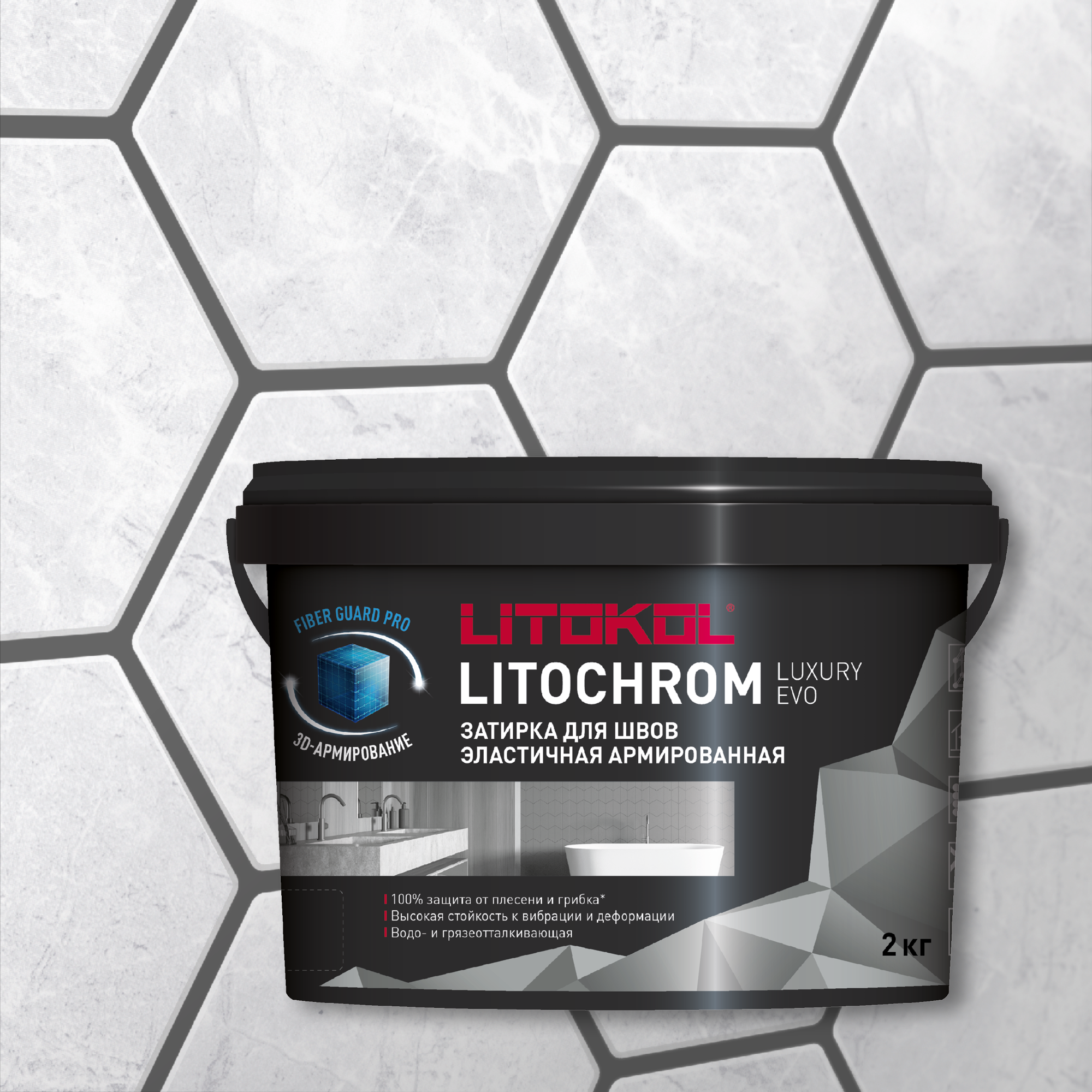 Затирка для плитки, Цементно-полимерная LITOCHROM LUXURY EVO LLE.100, Пепельно-белый, 2 кг