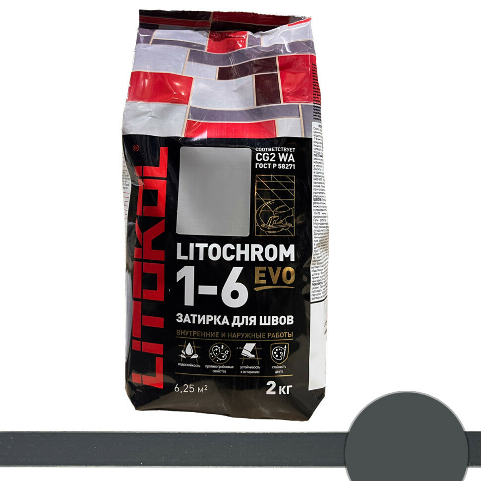 Купить Затирка для плитки, Влагостойкая LITOCHROM 1-6 EVO LE.140, Мокрый асфальт, 2 кг