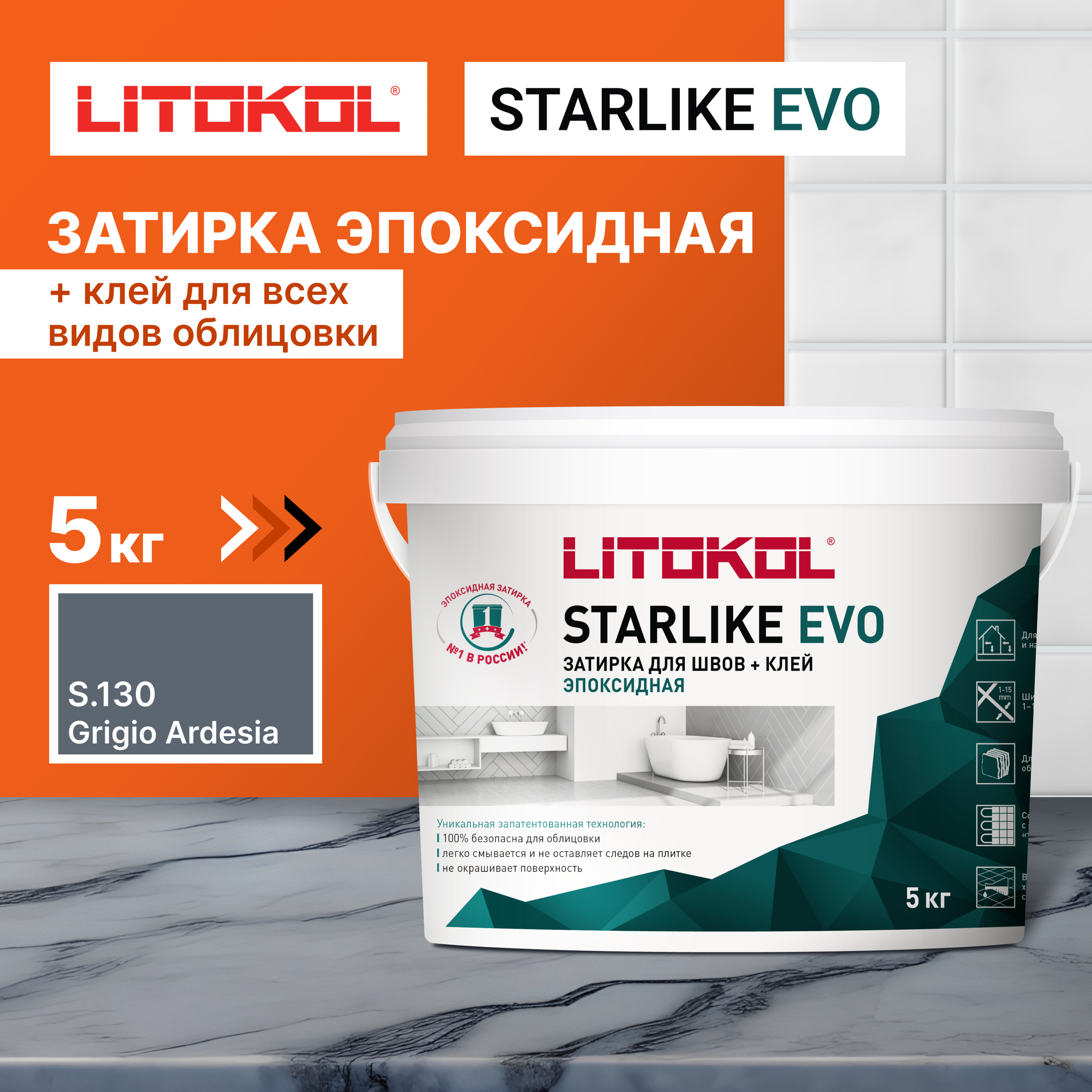 Купить LITOKOL STARLIKE EVO двухкомпонентная затирка на эпоксидной основе S.130 grigio ardesia (5 кг)