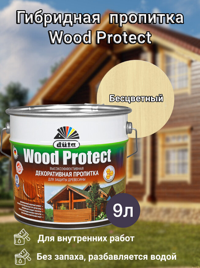Пропитка декоративная Dufa Wood Protect для защиты древесины бесцветный 10л