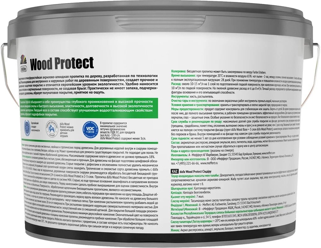 Dufa Wood Protect / Дюфа Вуд Протект Пропитка декоративная для защиты древесины бесцветный 2,5л
