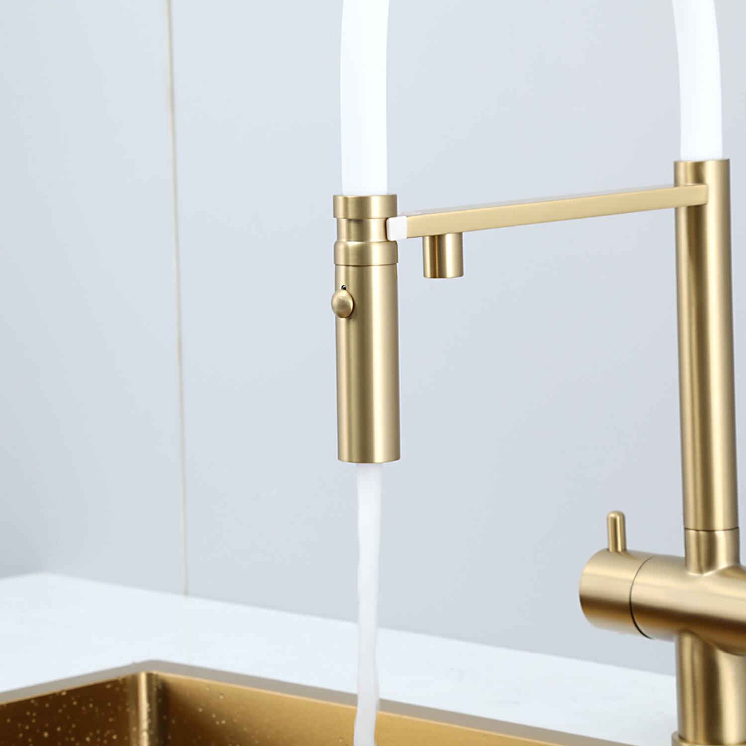 Смеситель для кухни Gappo G4397-83 с подключением фильтра, белый/золото