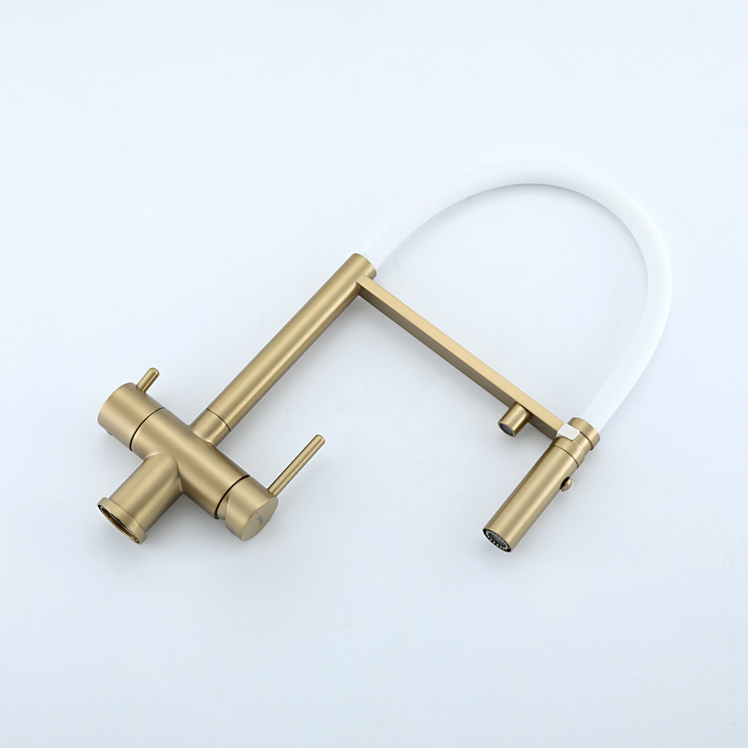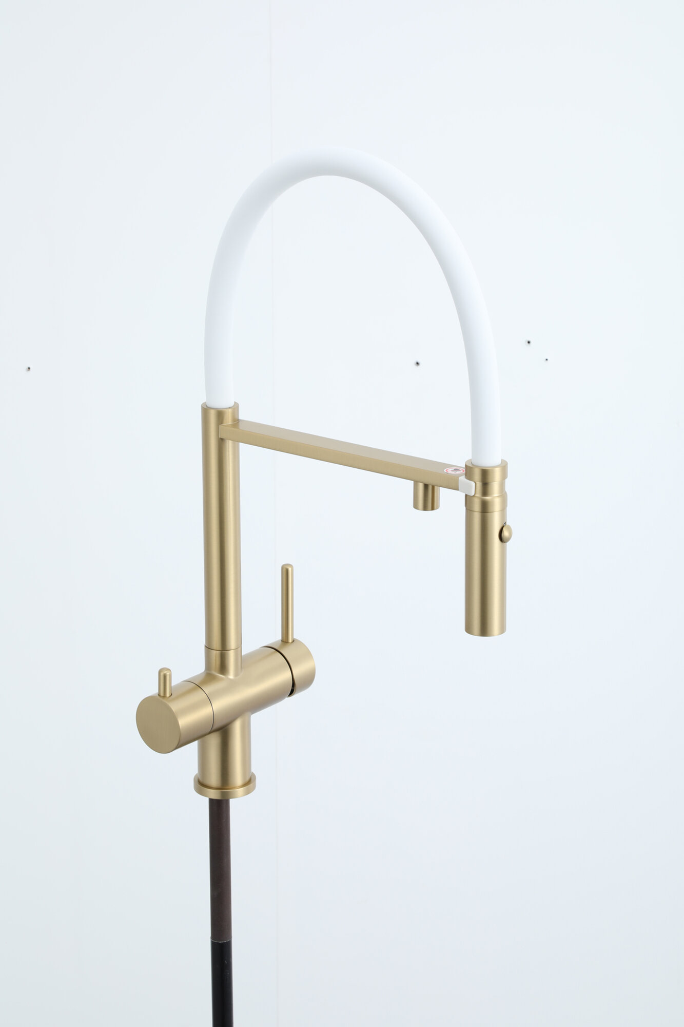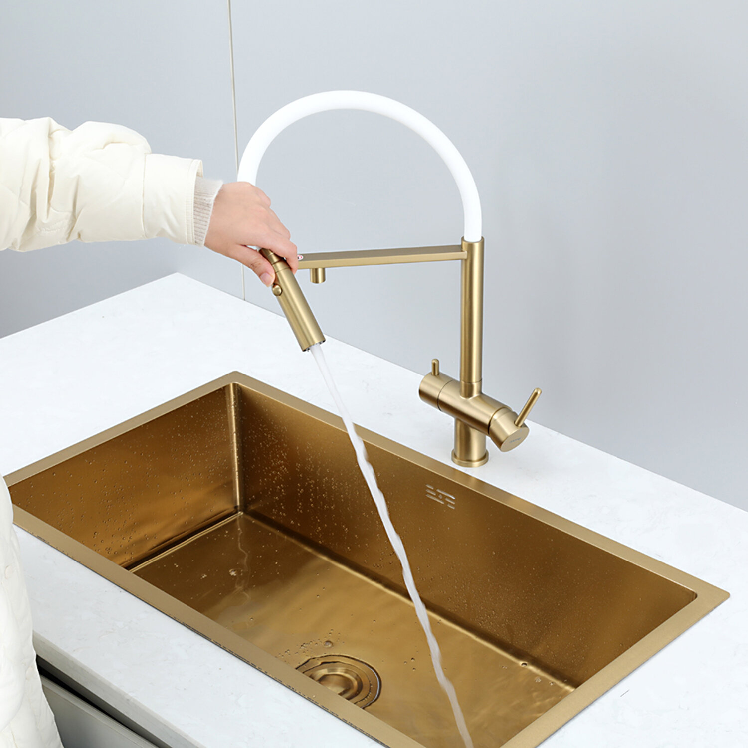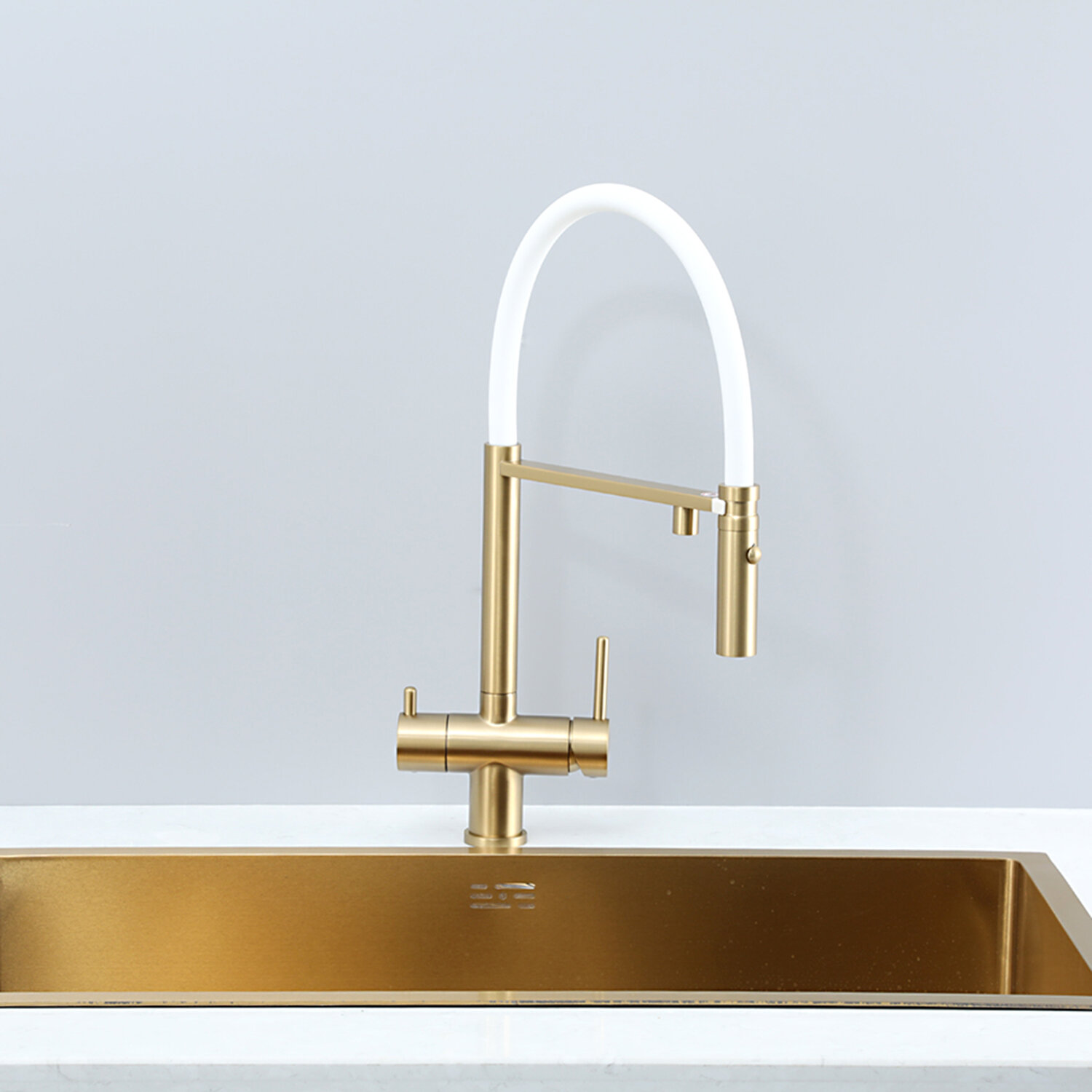 Купить Смеситель для кухни Gappo G4397-83, золотой сатин, покрытие PVD, горизонтальный монтаж, гибкий излив