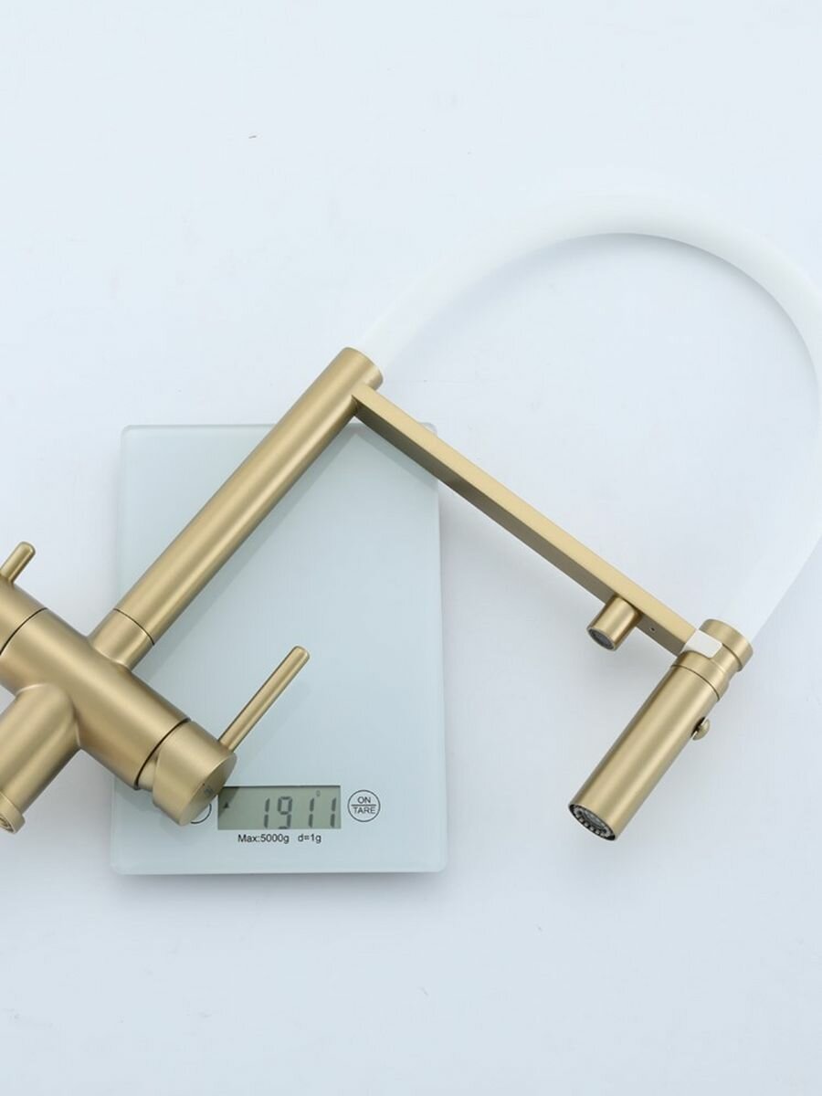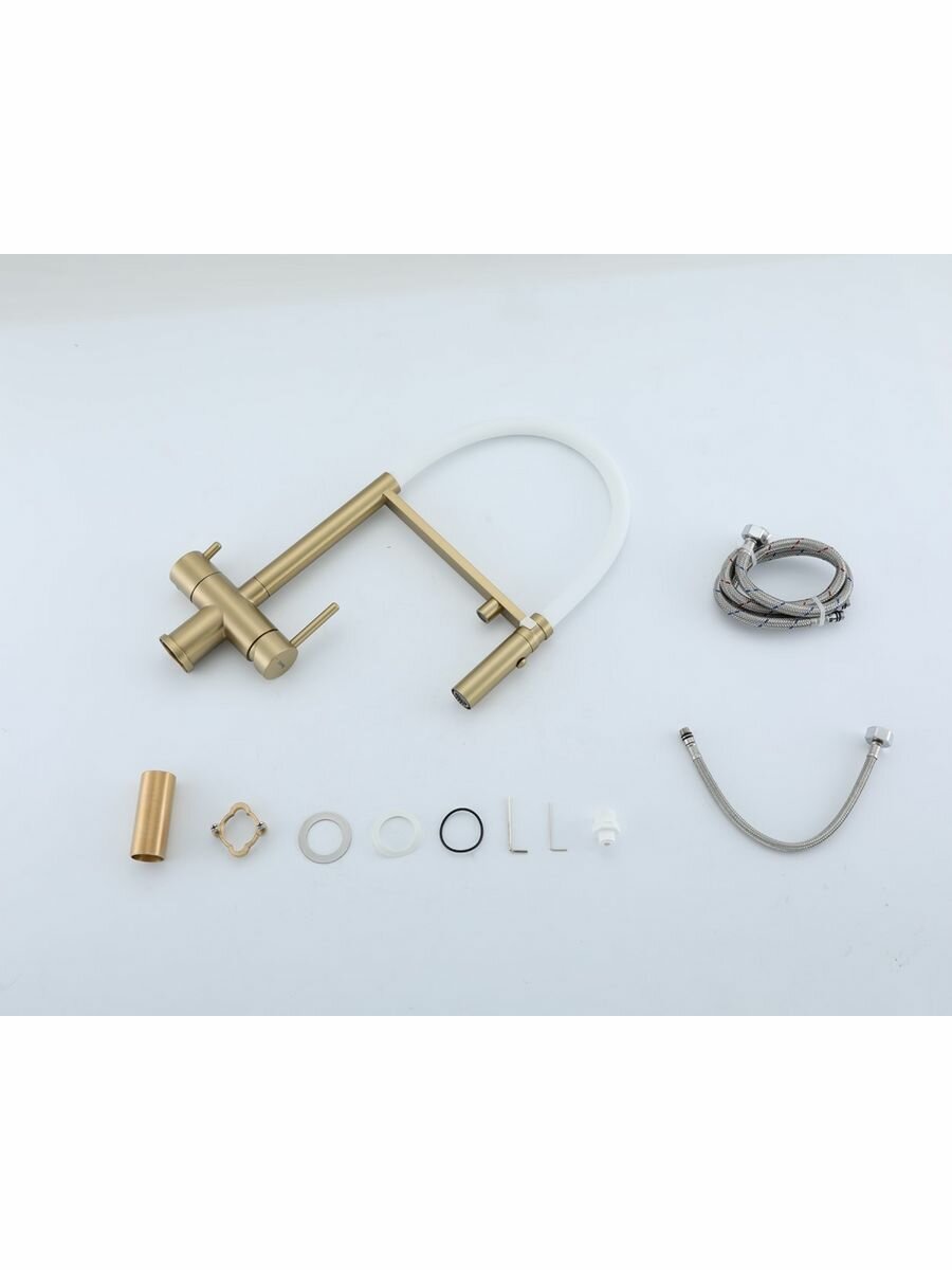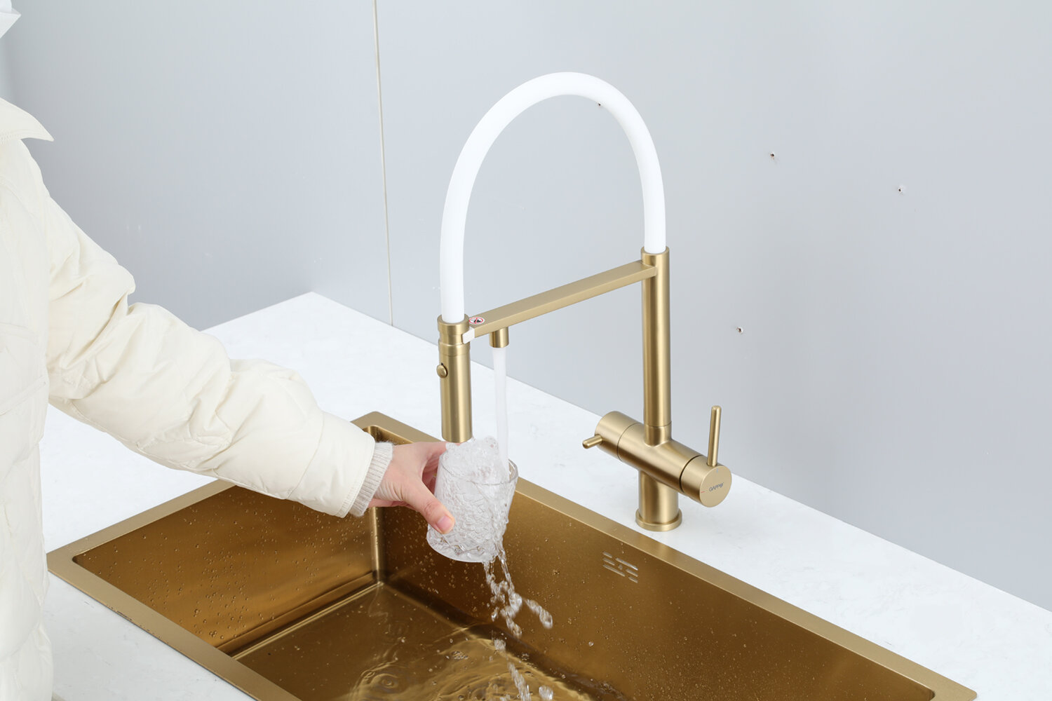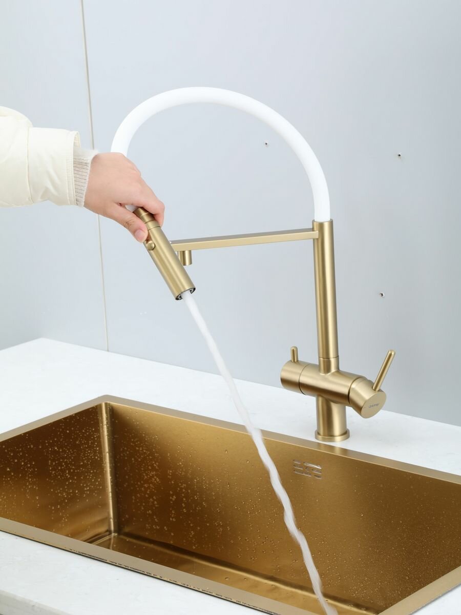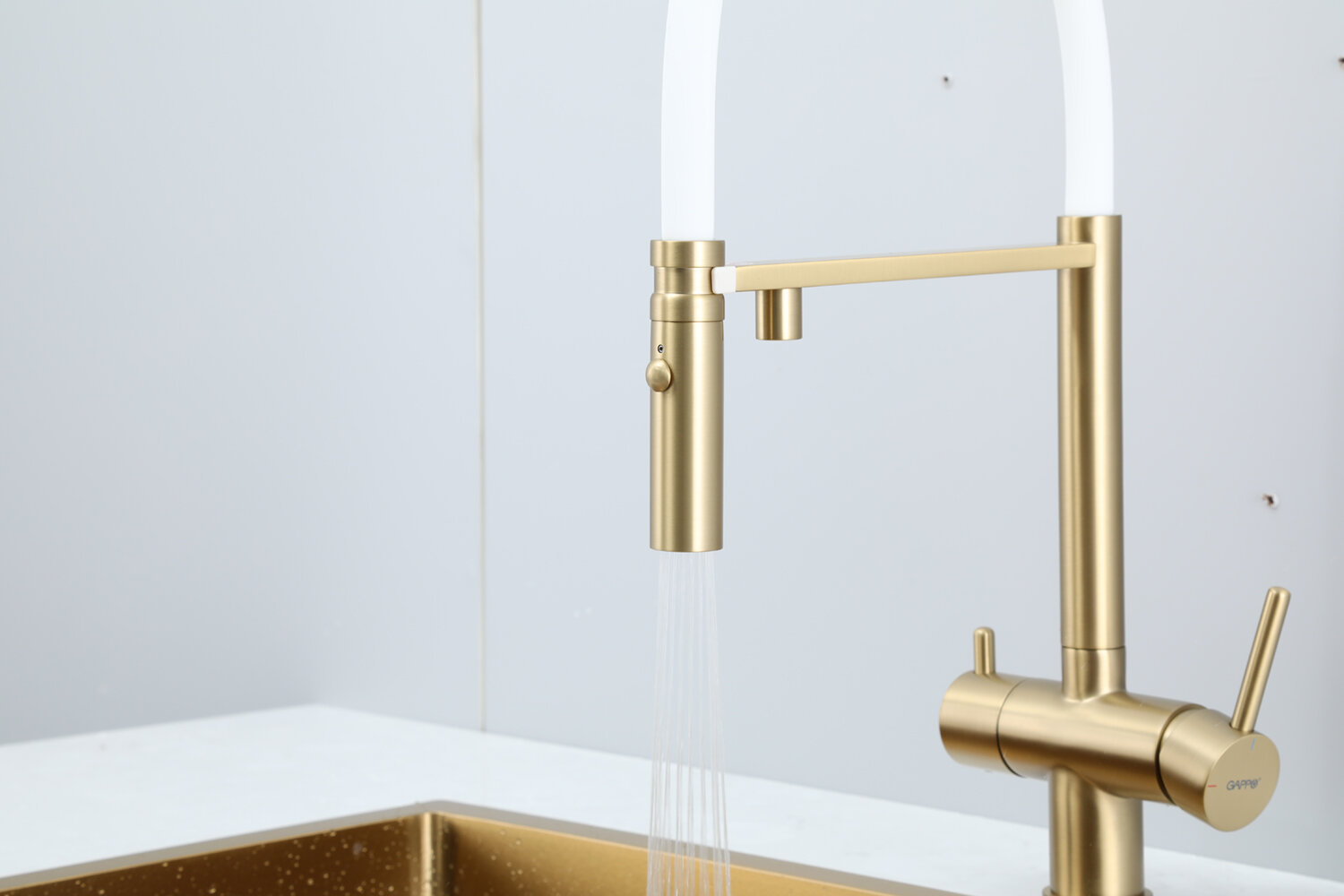 Смеситель для кухни Gappo G4397-83, золотой сатин, покрытие PVD, горизонтальный монтаж, гибкий излив
