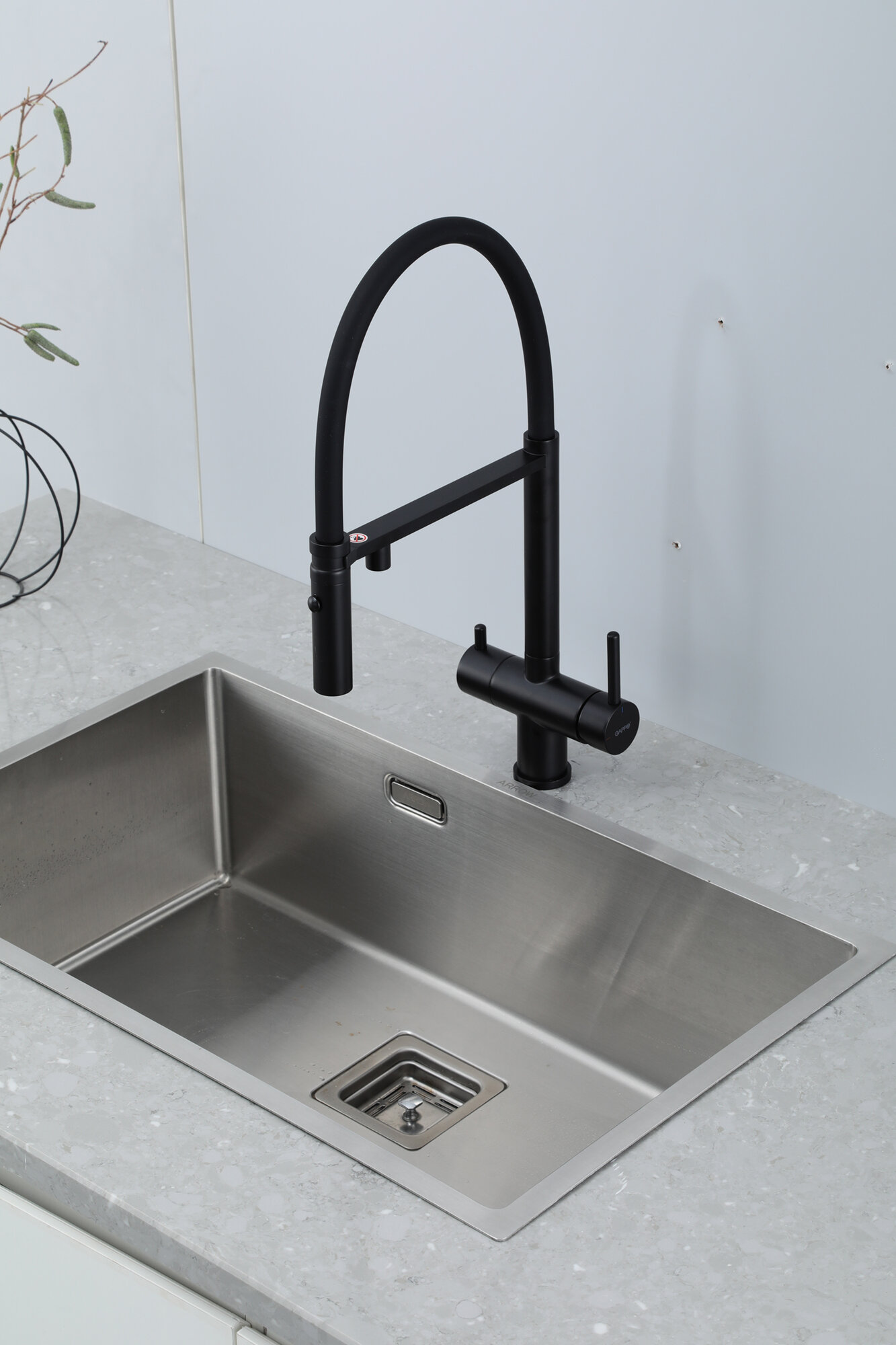 Смеситель для кухонной мойки Gappo G97-86 G4397-86 с подключением фильтра питьевой воды и гибким изливом, черный