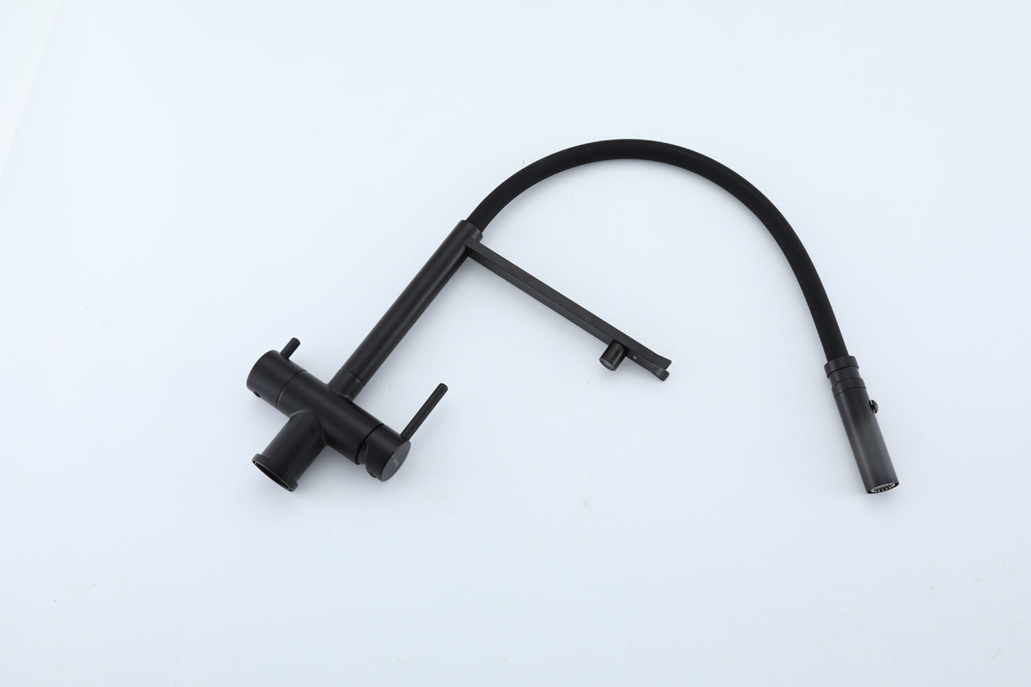 Смеситель для кухни с гибким изливом и подключением фильтра питьевой воды, черный матовый