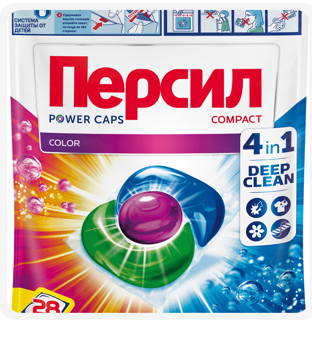 Капсулы для стирки Персил Power Caps Color 4 in 1, контейнер, 28 капсул