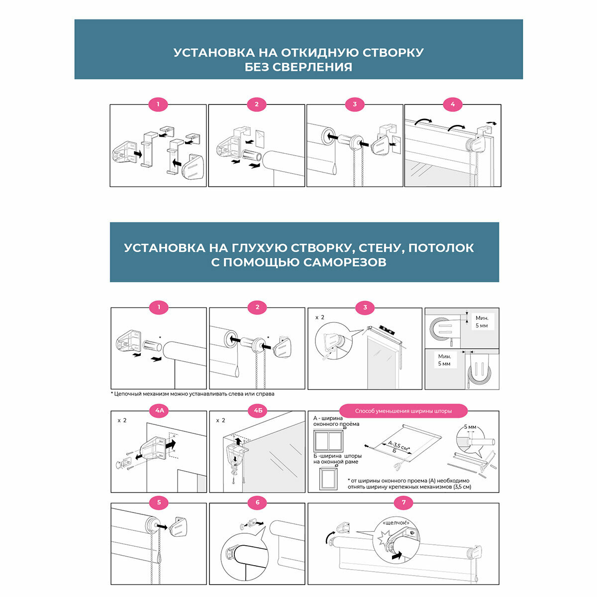 | Комплектация | рулонная штора в сборе, механизм в сборе (D17мм), пластиковая цепочка управления, крепление на откидную створку окна без сверления, инструкция по установке |