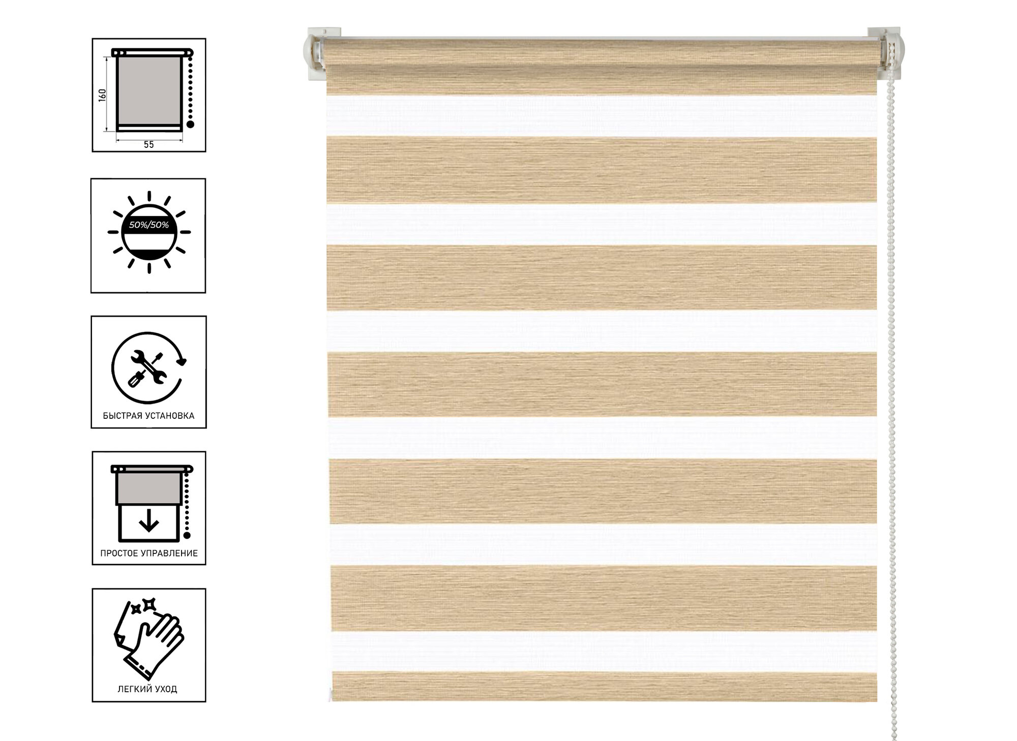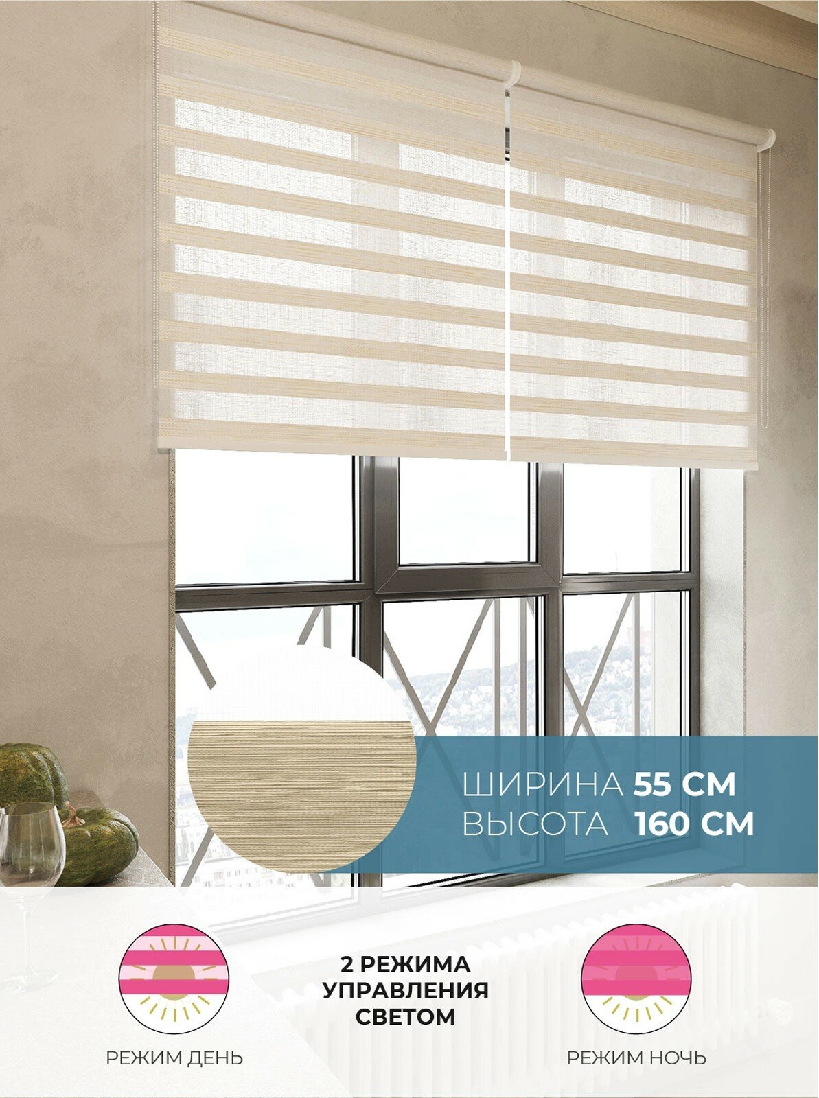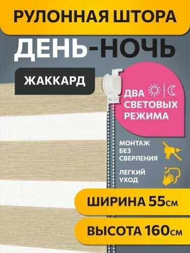 Рулонные шторы день ночь Жаккард Бежевый DECOFEST 55 см на 160 см, жалюзи на окна