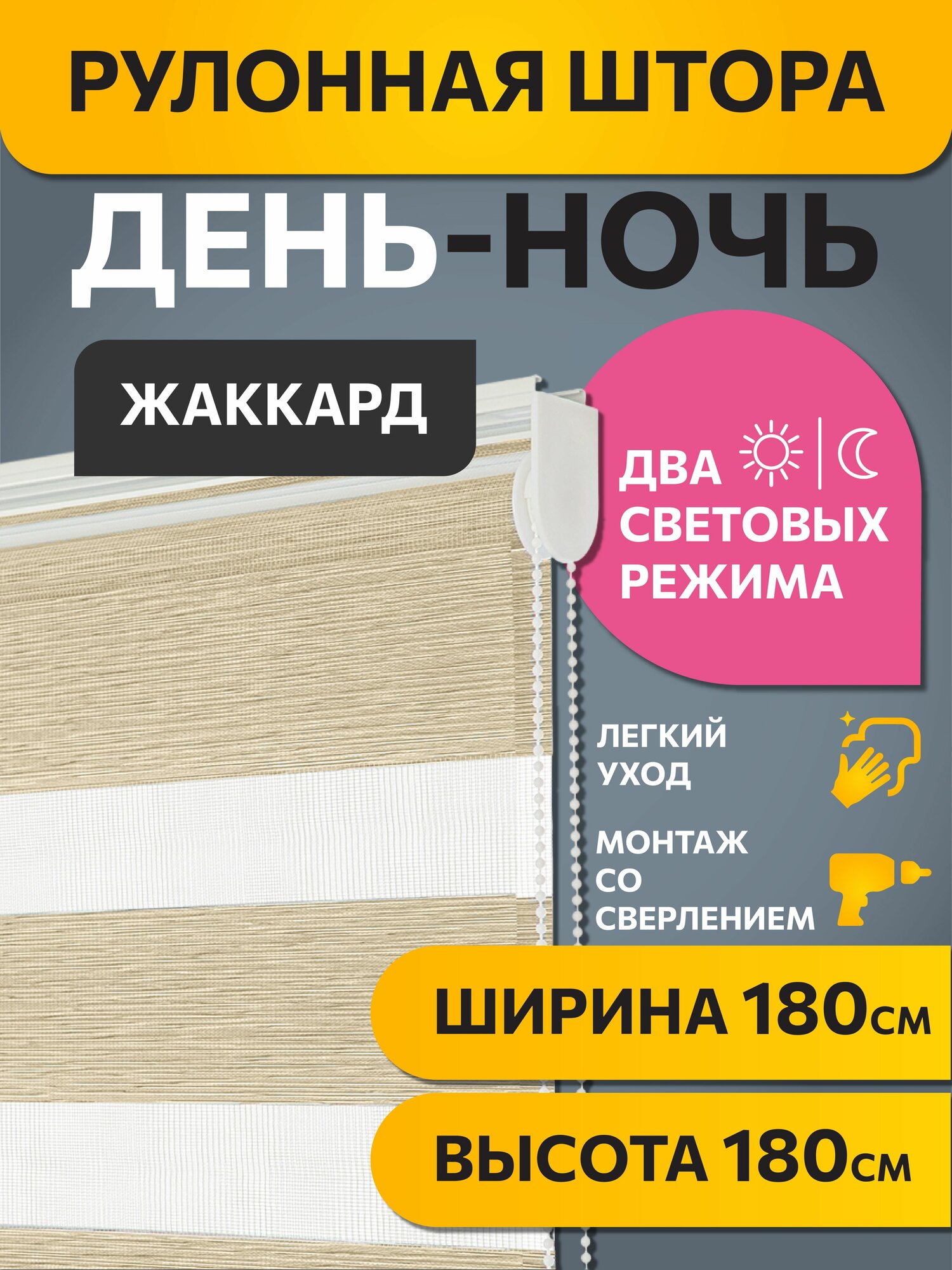 СохранитьРулонные шторы день ночь 180 см x 180 см Бежевый Жаккард DECOFEST интересное: