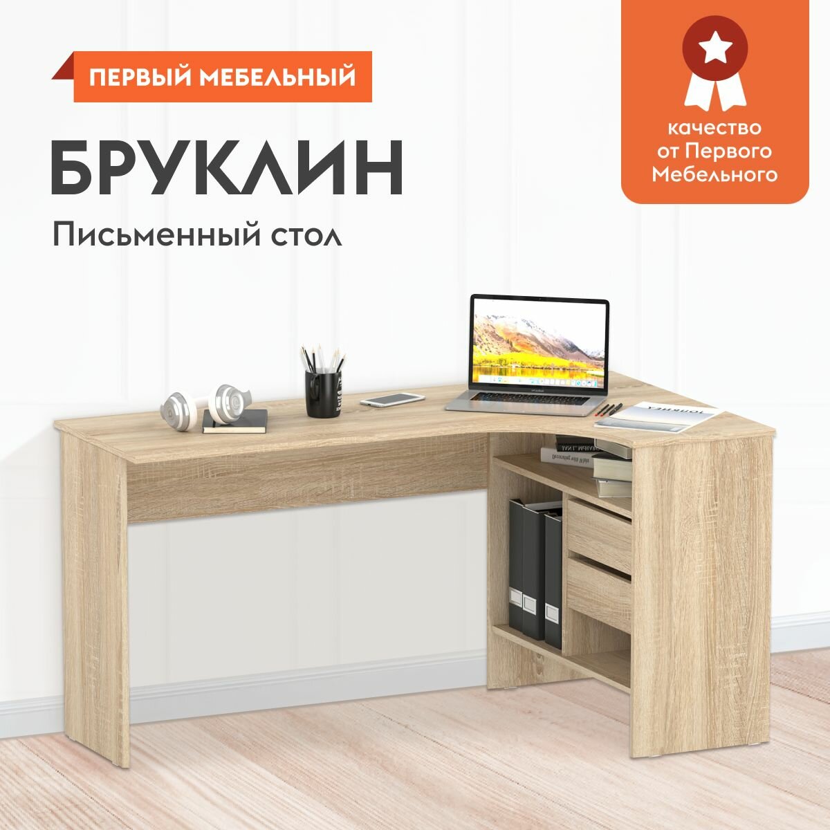 СохранитьУгловой письменный, компьютерный стол Бруклин, 145х81х74 см, Дуб Сонома, правый интересное: