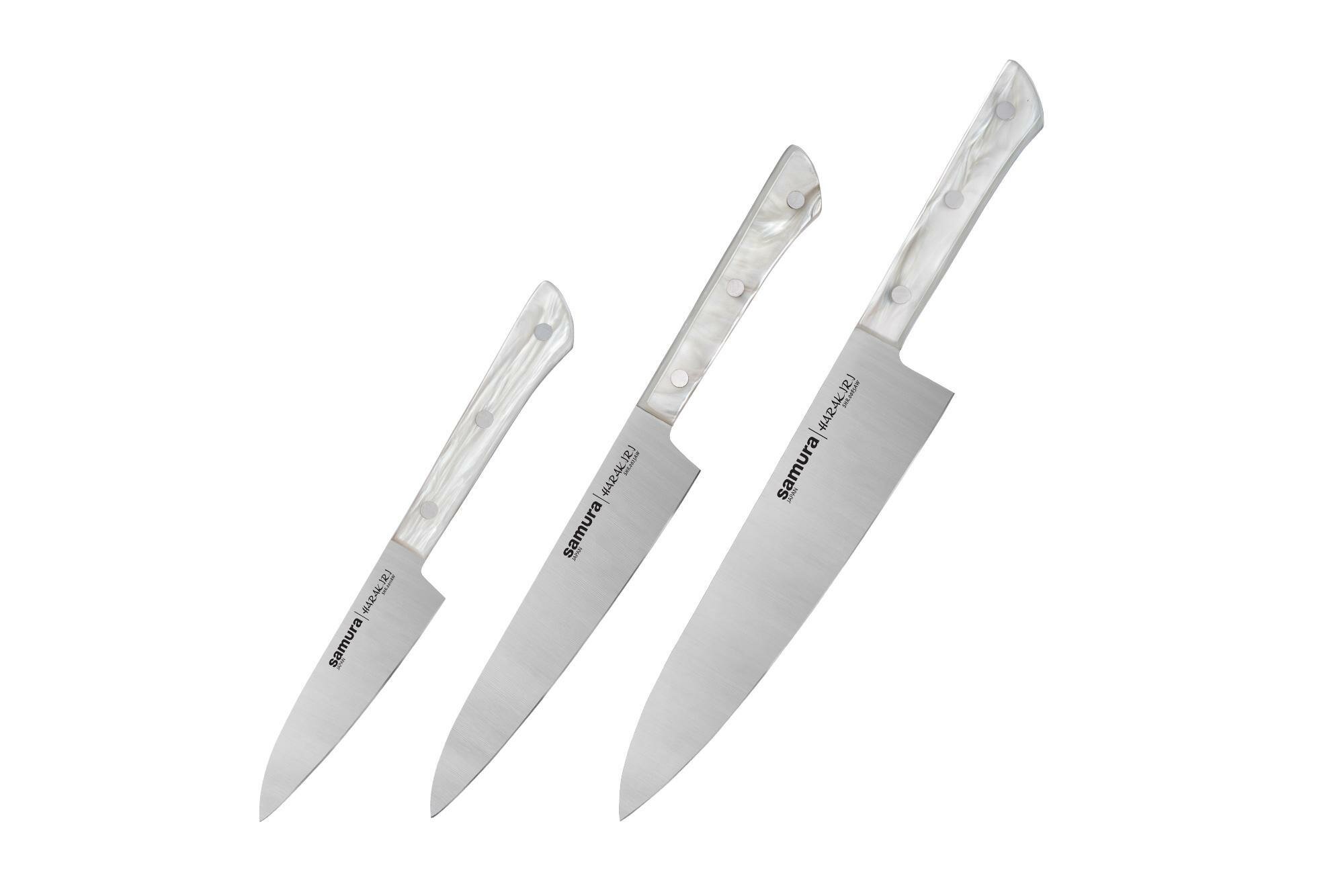 Набор ножей кухонных Samura Harakiri поварская тройка / нож для овощей / шеф нож / универсальный нож SHR-0220AW