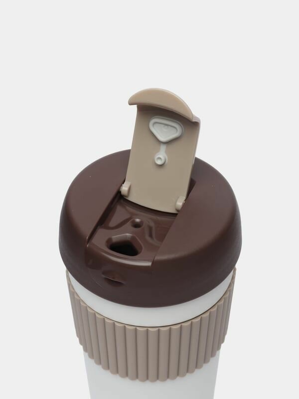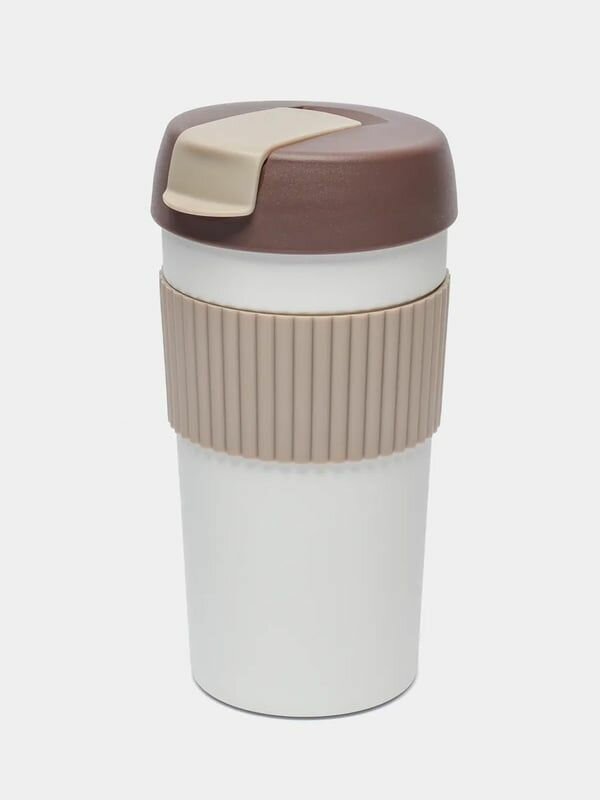 Термостакан-непроливайка KISSKISSFISH Rainbow Vacuum Coffee Tumbler, S-U45C-216, (серый, белый, коричневый), 490 мл