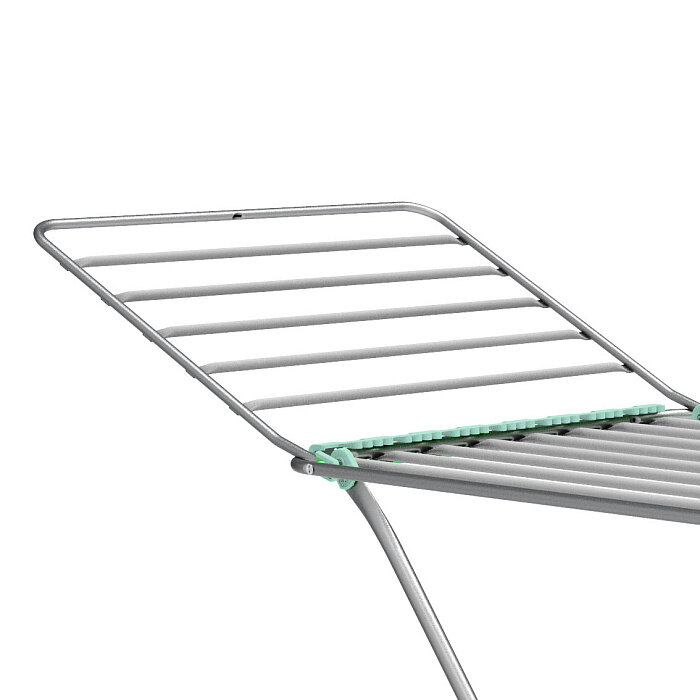 Сушилка для белья напольная складная, серебряный, 3 зоны, до 15 кг. Пластмассовые наконечники на струнах обеспечивают дополнительную устойчивость и предотвращают скольжение белья