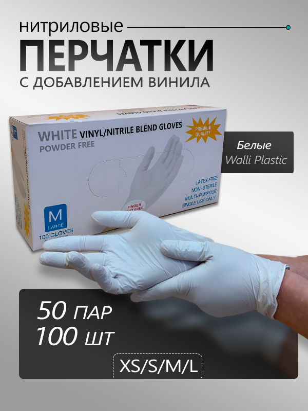 Перчатки медицинские нитриловые/виниловые Wally Plastic, черные, размер XS/S/M/L/XL (100шт/50 пар)