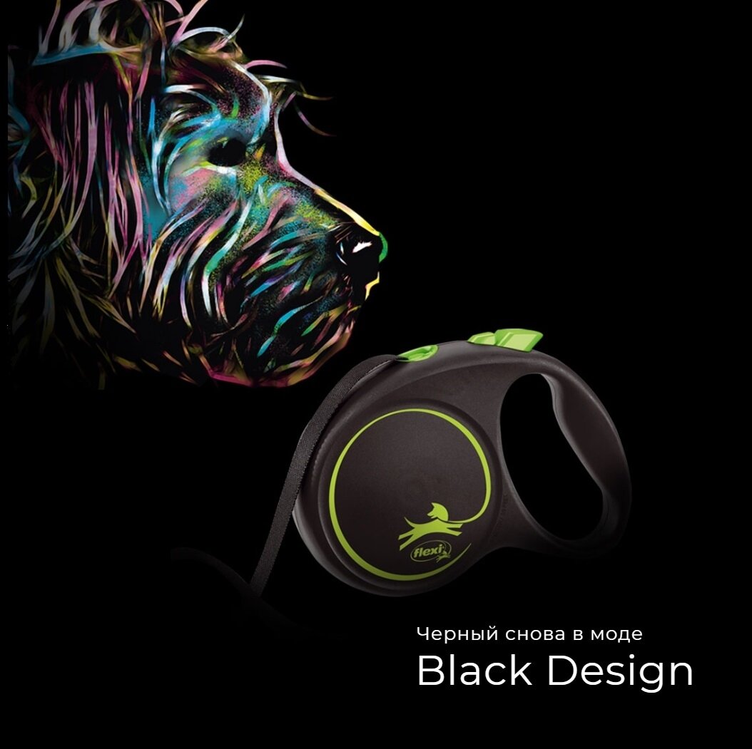 Flexi Рулетка Flexi Black Design S (до 12 кг) 5 м трос, черный/зеленый
