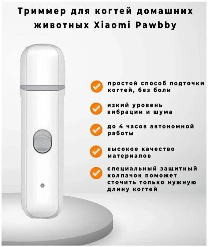 Триммер Xiaomi Pawbby Pet Nail Grinder MG-NG001A-EU для когтей домашних животных, АКБ, белый 9518044