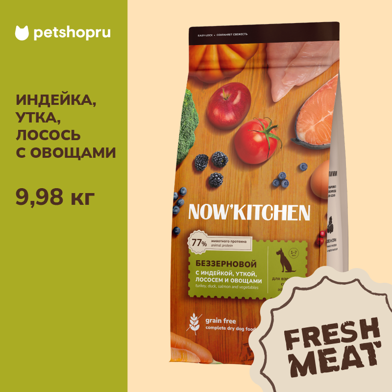 Now Fresh Беззерновой для Взрослых собак с Индейкой, Уткой и овощами (Fresh Adult Recipe Grain Free 26/16) 2303022 (9,98 кг)
