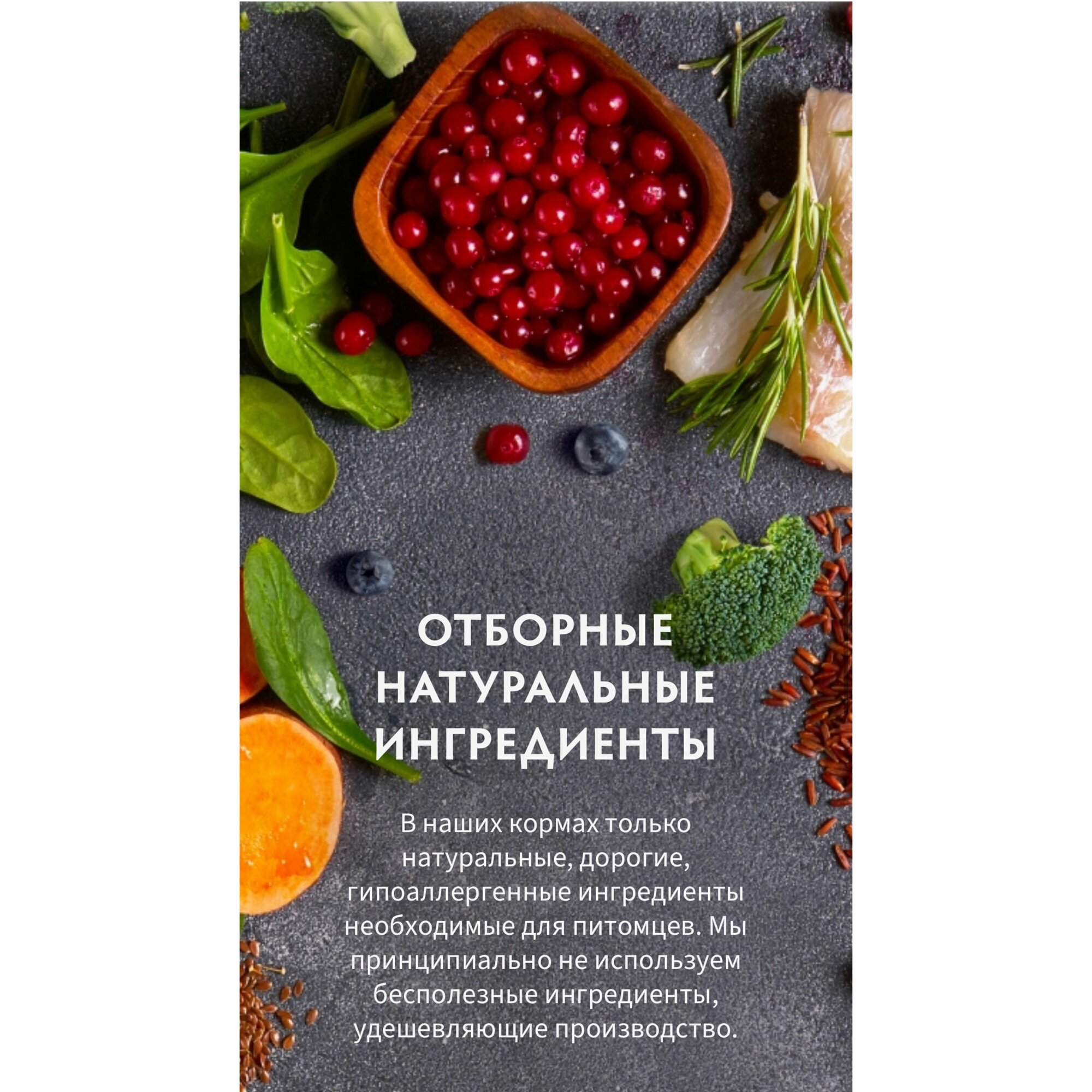 | Состав | дегидрированное мясо индейки (32%), свежее мясо индейки (29%), цельнозерновой коричневый рис, гидролизованный белок индейки (5%), жир индейки (3%), свежее масло лосося (1%), льняное семя, порошок корней цикория (натуральный источник пребиотиков: фос и инулина), пивные дрожжи (натуральный источник мос), сушеное яблоко, сушеный шпинат, сушеная брокколи, сушеная клюква, сушеная черника, растительная клетчатка, юкка мохаве. кроме заявленных в составе животных ингредиентов продукт может содержать следы днк других ингредиентов животного или растительного происхождения в незначительных количествах из-за технологических особенностей производства кормов |