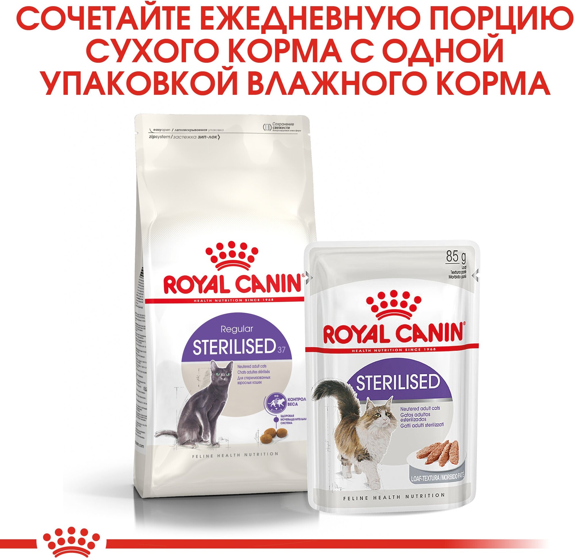 Royal Canin Sterilised питание для кастрированных котов и стерилизованных кошек, поддерживает оптимальный вес, снижает риск заболеваний мочевыводящих путей в возрасте от 1 года 4 кг
