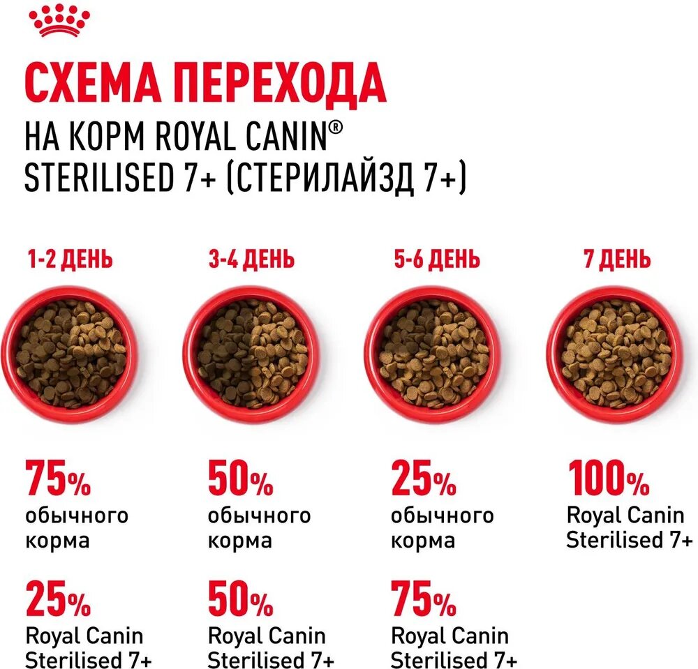 Royal Canin Sterilised питание для кастрированных котов и стерилизованных кошек, поддерживает оптимальный вес, снижает риск заболеваний мочевыводящих путей в возрасте от 1 года 4 кг