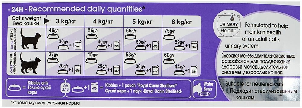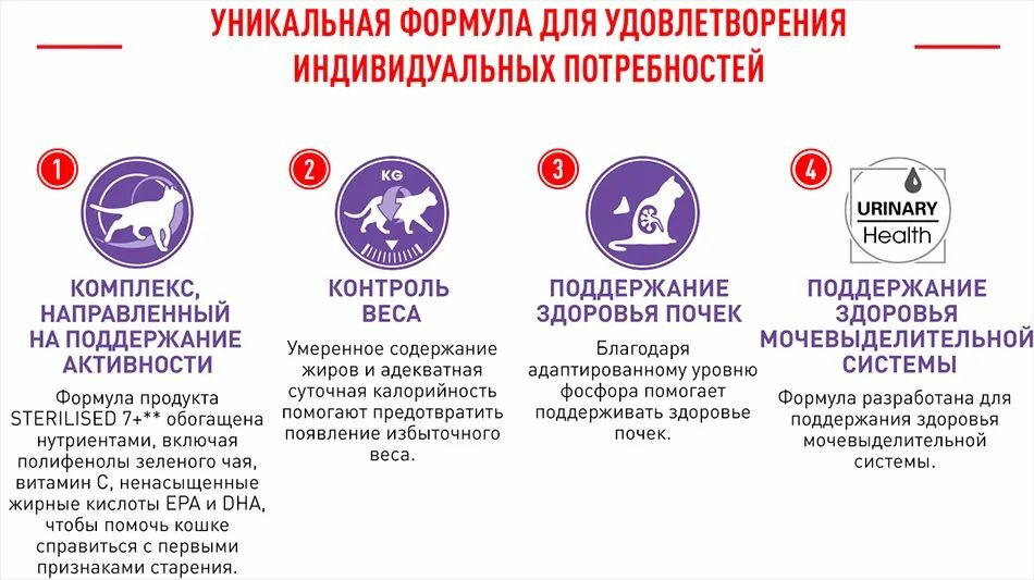 | Особые потребности | для стерилизованных/кастрированных / профилактика МКБ / профилактика избыточного веса |