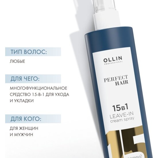 OLLIN Professional Perfect Hair несмываемый крем-спрей 15 в 1, 250 мл, спрей