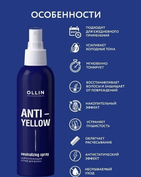 Купить OLLIN PROFESSIONAL ANTI-YELLOW Нейтрализующий спрей для волос, 150мл