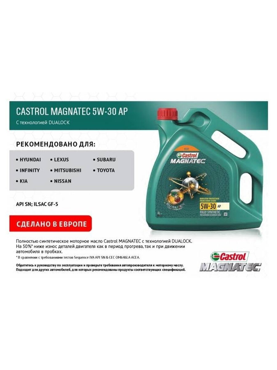 Ниже Вы можете прочитать отзывы на Castrol Масло Magnatec 5W-30 Ap 4Л Sn Gf-5 (Новая Упаковка), ознакомится с подробными характеристиками, посмотреть интересные обзоры и фотографии на Castrol Масло Magnatec 5W-30 Ap 4Л Sn Gf-5 (Новая Упаковка).