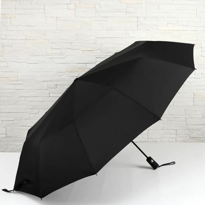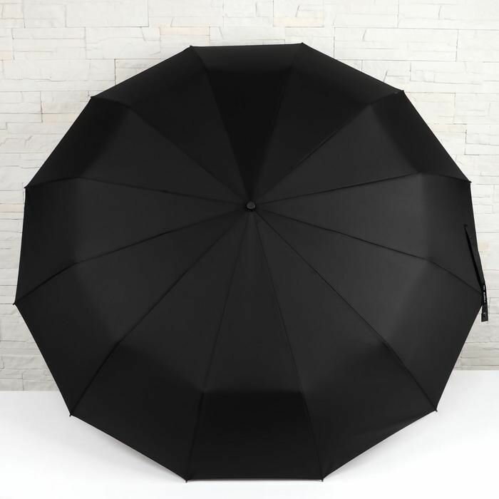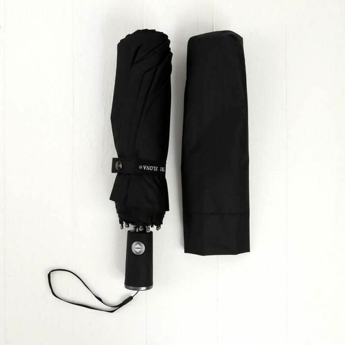 Зонт Три слона, автомат, 3 сложения, купол 125 см., 12 спиц, черный