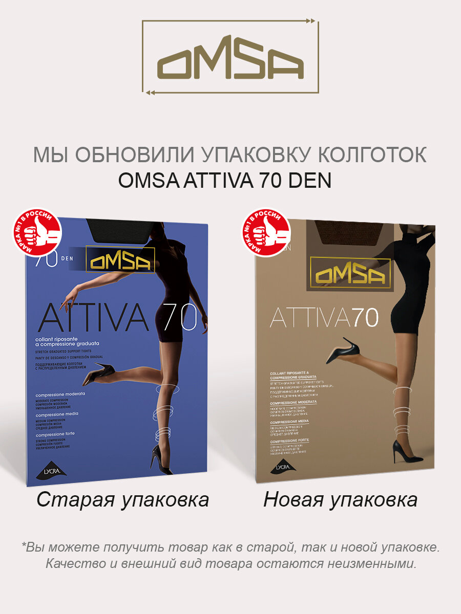 Колготки Omsa Attiva, 70 den, размер 3-M, lola