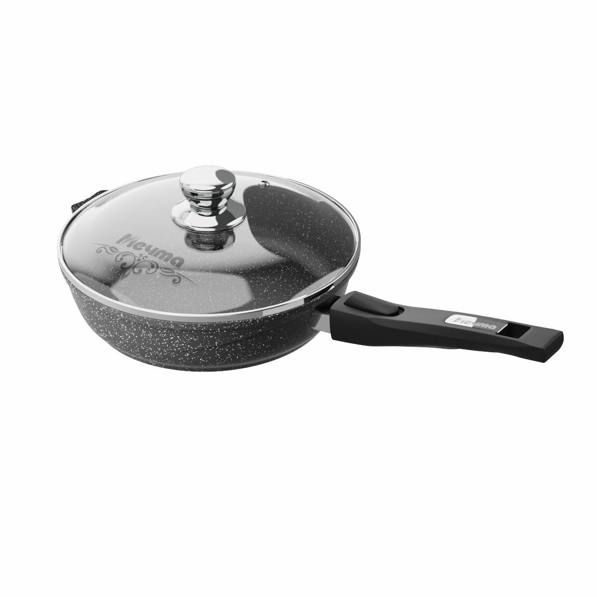Сковорода мечта посуда Мечта Гранит black со съемной ручкой и стеклянной крышкой, 26 см, арт. с026802