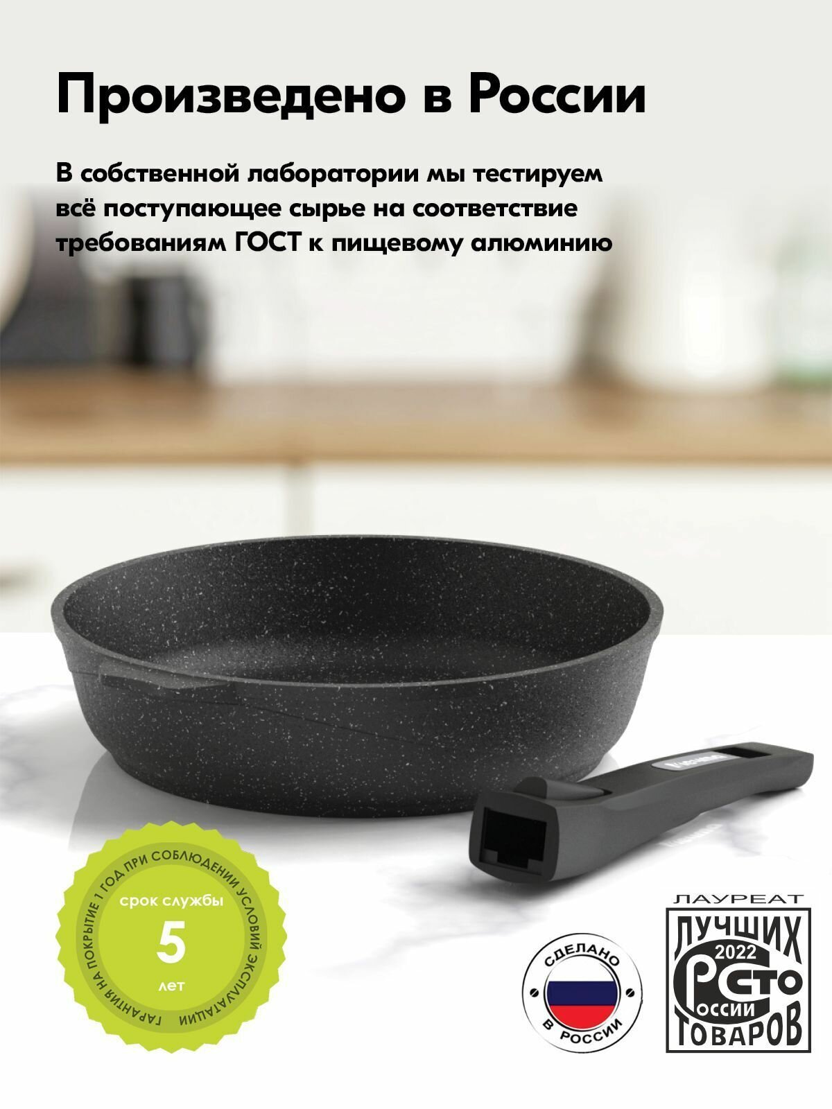 Сковорода с гранитным антипригарным покрытием крышкой и съемной ручкой 26 см Мечта