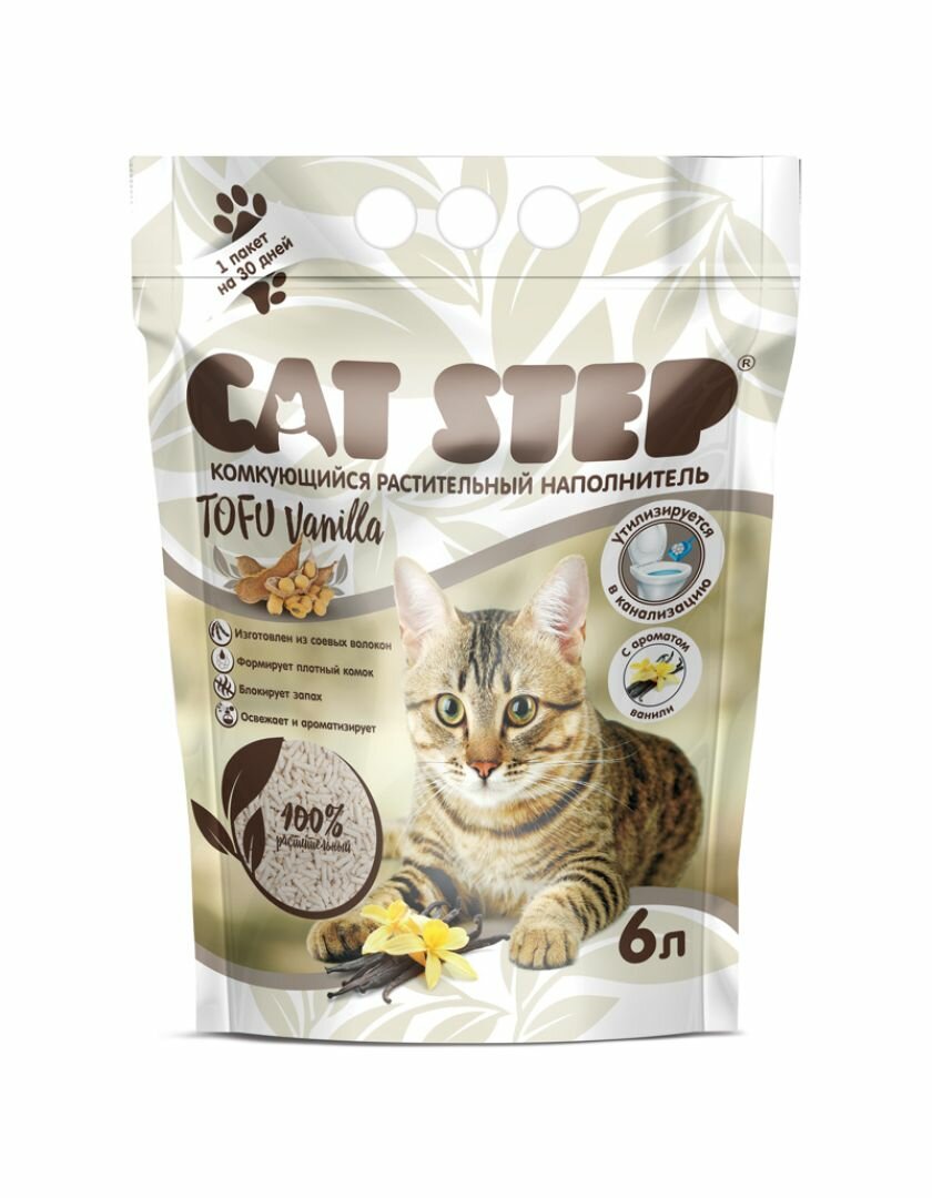 Купить Cat Step Tofu Vanilla наполнитель растительный комкующийся с ароматом ванили - 6 л