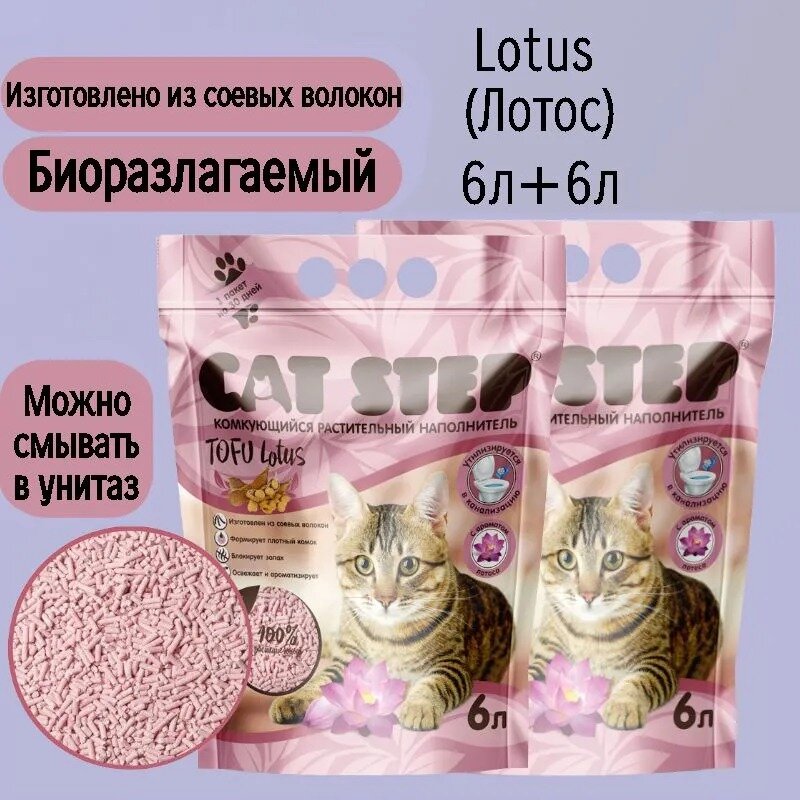 CAT STEP TOFU LOTUS наполнитель комкующийся для туалета кошек (6 + 6 л)